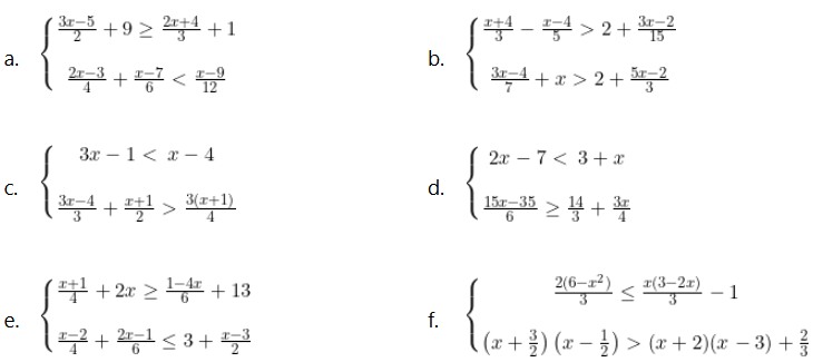 Un sistema de inecuaciones está formado por dos o más desigualdades que deben resolverse de manera simultánea. El objetivo es encontrar el valor o el conjunto de valores de «x» que satisfacen a cada una de las inecuaciones. Para hallar la solución final, se resuelve cada inecuación por separado y, posteriormente, se analiza la intersección de los intervalos obtenidos (generalmente mediante una gráfica). Esta intersección representa las soluciones comunes a todas las desigualdades del sistema.