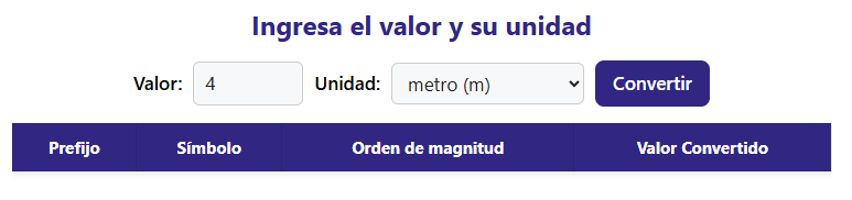 Solo debes ingresar el valor, elegir su unidad (m, cm, km, mm, μm, etc.) y pulsar Convertir. En un segundo obtendrás todas las equivalencias dentro del Sistema Internacional. ¡Rápido, preciso y sin complicaciones!