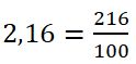 | 3° | M.C.D.(216,100) = 4 Se simplifica la fracción entre 4. $$2,16=\frac{216}{100}=\frac{54}{25}$$ |