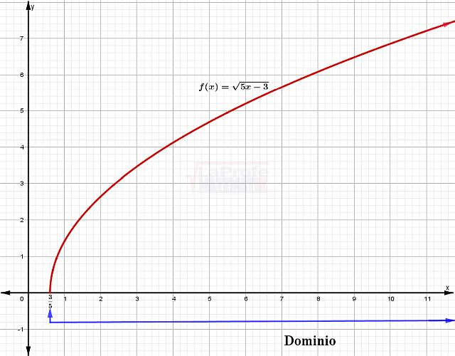 | 3 | El resultado nos quiere decir que: | Está definida para todos los valores reales de 𝑥 mayores o iguales que 3/5 |