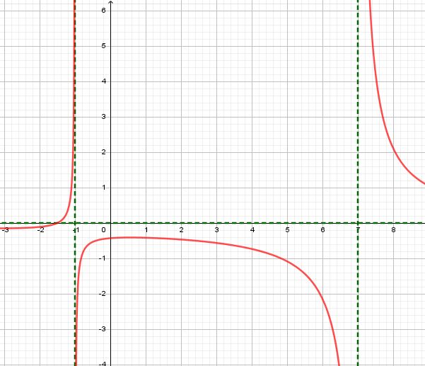 Observa que en x = –1 y en x = 7 la función se hace indefinida, por lo tanto la curva no pasa por ellos.