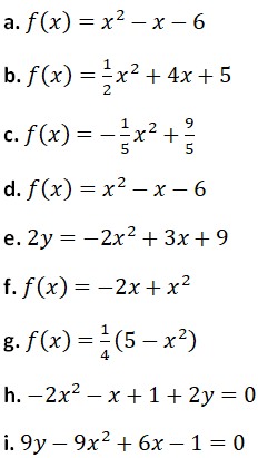 Grafica las siguientes funciones cuadráticas y aplicando los 6 pasos.