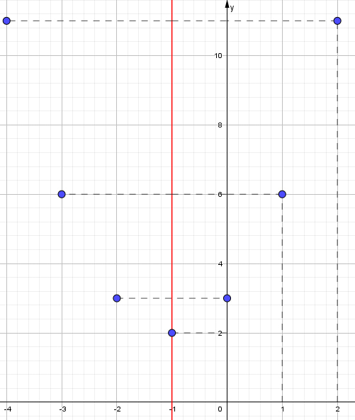 - Dibuja una recta que pase por el vértice de la parábola, representando el eje de simetría de la parábola.