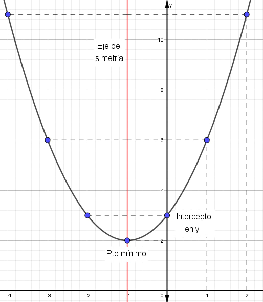 - Sí, a > 0. La parábola es cóncava hacia arriba y el punto vértice se comporta como un punto mínimo.