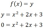 Intercepto en “y” → x = 0 | Intercepto en “x ” → y = 0 Se aplica la fórmula general: Como el discriminante es: No existen raíces. Dado que la parábola es cóncava hacia arriba, su vértice se ubicará por encima del eje “ x “. |