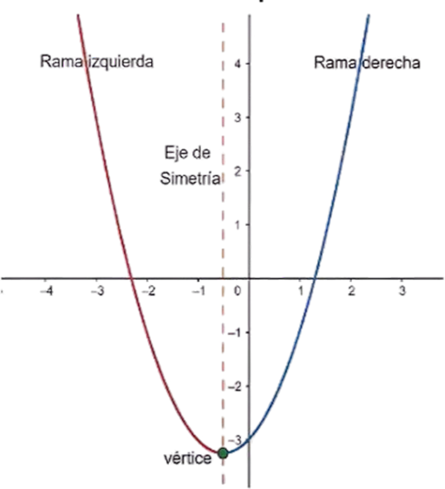 I. Es una curva simétrica cuyo eje de simetría pasa por un punto extremo, llamado vértice.