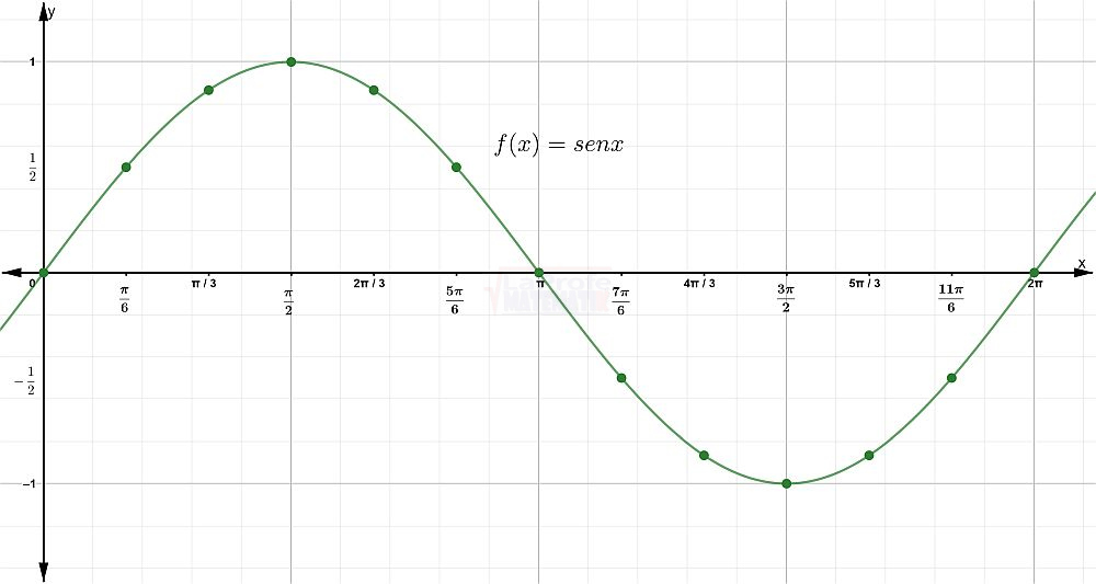 La función seno es de la forma$$f(x)=senx$$y es una función real de variable real. Esto se debe a que toma cada ángulo expresado en radianes (números reales) y se le asigna un único número real como resultado.