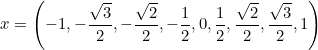 - Valor mínimo = -π/2 (-90°) cuando x = -1.