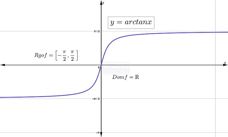 | La inversa de la función tangente, permite determinar el ángulo conocido el valor de la tangente. tan x = y ⇒ arctan y = x Su dominio es el conjunto de los números reales Su rango es: |