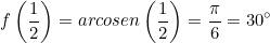 Entonces la interpretación de la definición del arcoseno de un valor x como el ángulo y en el intervalo