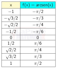 Allí tienes la tabla de valores, te recuerdo que el dominio está comprendido en el intervalo [-1,1]