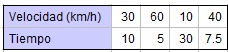 Se ordena los datos, el tercer dato es la menor velocidad por lo tanto es el primero. A partir de este orden se observa que son magnitudes inversamente correlacionadas, ya que la velocidad aumenta y el tiempo disminuye.